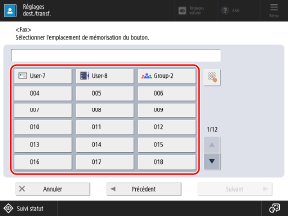 Lorsque vous sélectionnez un bouton avec un destinataire déjà enregistré, les informations enregistrées sont remplacées.