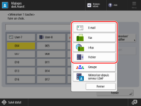 Vous pouvez enregistrer des destinataires dans le carnet d'adresses et sur des boutons 1 touche en utilisant le panneau de commande.
