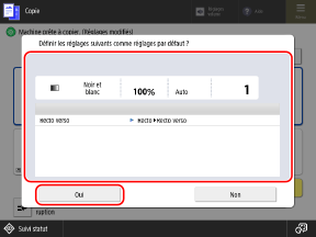 Pour changer les réglages par défaut en tant que réglage de la machine, passez à l'étape