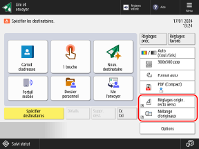 Vous pouvez remplacer les boutons suivants affichés sur les écrans de numérisation (Lire et Envoyer), de télécopie et de copie par les boutons dans [Options] et masquer les boutons.