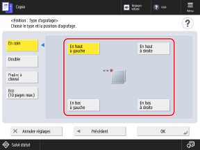 Sélectionnez le mode de finition. Pour de plus amples informations, consultez l'écran d'aide qui s'affiche en appuyant sur [