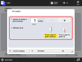 [Nombre de feuilles à plier ensemble] (Pour le pli cavalier et le pli cavalier parallèle)