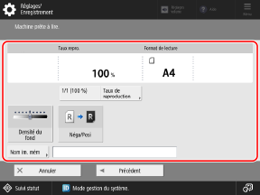 Écran [Accueil]L'écran [Réglages/Enregistrement] s'affiche.