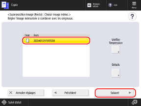 Écran de copieL'écran [Superposition d'image] s'affiche.