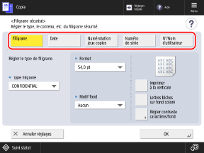 Écran de copieL'écran [Filigrane sécurisé] s'affiche.