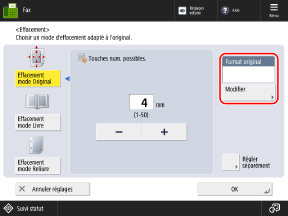 * Vous ne pouvez effacer les ombres d'un original que lorsque vous numérisez des formats affichés sur l'écran de sélection du format de l'original.