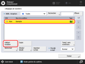 Sélectionnez une condition de transfert qui est enregistrée, puis appuyez sur [Valider/Invalider].