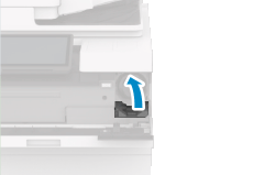 Placez vos doigts dans le renfoncement au centre du capot de remplacement du toner et tirez le capot vers vous pour l’ouvrir.