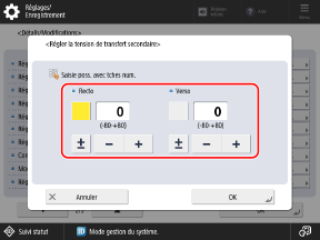 Appuyez sur [Modifier] dans [Régl. tension transf. sec.].