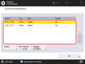 Sélectionnez l’élément du journal avec les détails que vous voulez vérifier, et appuyez sur [Détails].