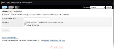 À partir d’un navigateur web sur un ordinateur, accédez à l’URL ci-dessous, et obtenez le fichier de licence en suivant les instructions à l’écran.