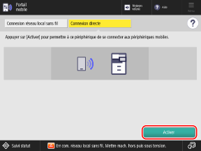 * Il y a deux modes de connexion directe d'un appareil mobile à la machine : le mode Point d'accès et Wi-Fi Direct. Vous pouvez voir sur quel mode la machine est réglée sur l'écran à l'étape