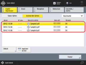 Sélectionnez la tâche dont vous voulez vérifier les détails, puis appuyez sur [Détails].