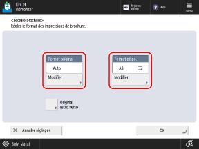 Appuyez sur [Modifier] sous [Format original], sélectionnez le nouveau format pour l'original, puis appuyer sur [OK].