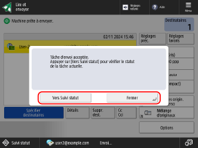 Lorsque le message [Vers Suivi statut] s'affiche