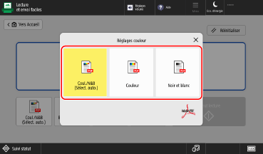 * Il peut arriver que certains originaux en couleur, comme les originaux dont seuls les bords sont en couleur, soient détectés comme des originaux en noir et blanc. Si tel est le cas, sélectionnez [Couleur].