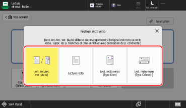Appuyez sur le bouton de sélection de la numérisation recto verso, et sélectionnez recto ou recto verso.