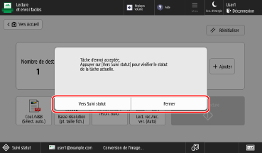 L'original suivant est numérisé et le même écran s'affiche.
