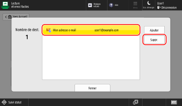 Sélectionnez l'adresse à supprimer, puis appuyez sur [Supprimer].