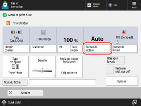 Écran de numérisationL'écran [Format de lecture] s'affiche.