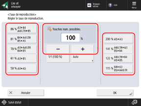 Écran de numérisationL'écran [Taux de reproduction] s'affiche.