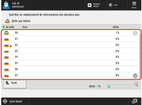 L'icône de l'emplacement mémoire et sa hiérarchie (numéro et nom de boîte dans le cas d'une boîte aux lettres) sont affichées en haut à gauche de l'écran.