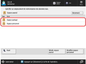Sélectionnez [Espace partagé] ou [Espace personnel].