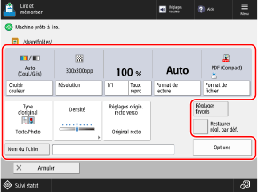 Réglages de numérisation* Les éléments qui s'affichent à l'écran varient d'un modèle et d'un équipement en option à l'autre.