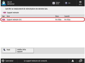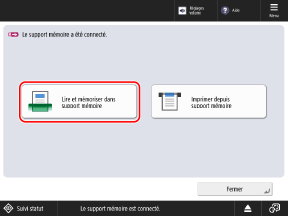 Appuyez sur [Lire et mémoriser dans support mémoire], puis passez à l'étape