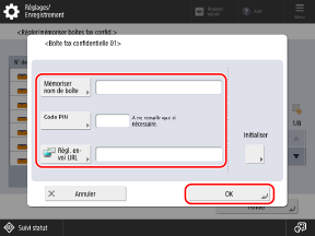 Configurez la boîte de réception de fax confidentiels et appuyez sur [OK].