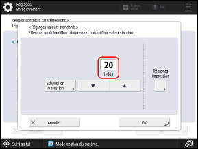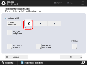 L’échantillon est imprimé et l’écran [Régler contraste caractères/fond] s’affiche à nouveau.