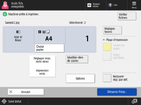 * Lorsque des fichiers de différents formats sont sélectionnés en même temps, comme un fichier PDF et un fichier JPEG, vous ne pouvez sélectionner que [Impression recto verso].