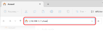 \\<nom d'hôte ou adresse IP de la machine>\share |