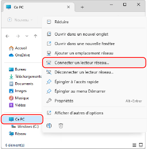 Cliquez avec le bouton droit sur [Ce PC] puis sur [Connecter un lecteur réseau].