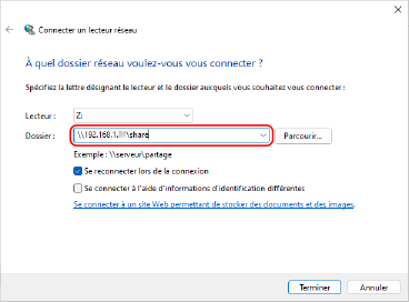 L'écran [Connecter un lecteur réseau] s'affiche.