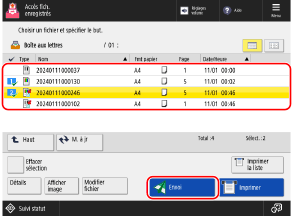 Vous pouvez sélectionner et envoyer simultanément jusqu'à 32 fichiers enregistrés dans la même boîte aux lettres.