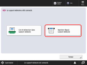 Appuyez sur [Imprimer depuis support mémoire] et passez à l'étape