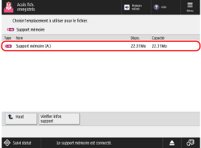 Écran [Accueil]L'écran permettant de sélectionner l'espace de stockage s'affiche.