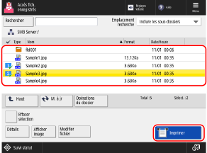 * Lorsque vous sélectionnez plusieurs fichiers, les fichiers sont imprimés dans l'ordre de leur sélection (ordre des numéros des cases à cocher).