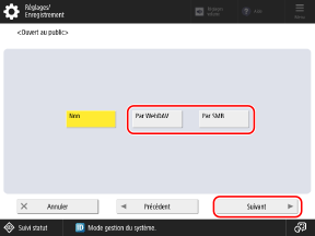 * Lorsque ce réglage est réglé sur [Oui], il n'est pas possible de se connecter à l'Boîte avancée depuis un système d'exploitation ne prenant pas en charge la communication cryptée SMB v3.0.