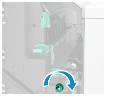 Tournez le bouton de sortie et faites passer tout papier coincé sur le côté du réceptacle C.
