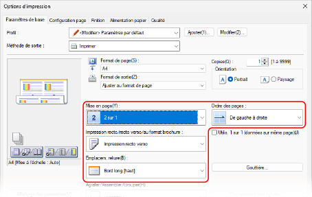 [Ordre des pages] s’affiche lorsque [Mise en page] est configurée sur un autre paramètre que [1 sur 1].