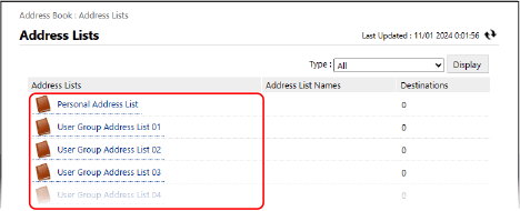 Tipos de lista de endereçosA tela da lista de endereços é exibida.