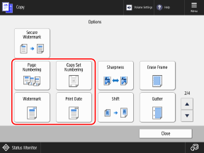 Você pode adicionar informações como números de página e data ao copiar. Você também pode adicionar uma marca d'água como "CONFIDENTIAL". Você também pode especificar uma string personalizada para a marca d'água.