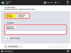 Para anexar a primeira página do original enviado como um arquivo PDF ao e-mail do aviso, marque a caixa de seleção [Attach TX Image].