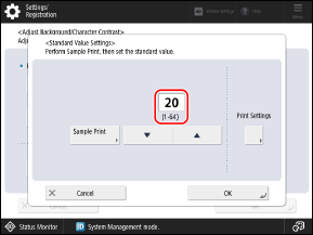 A amostra é impressa e a tela [Adjust Background/Character Contrast] é exibida novamente.