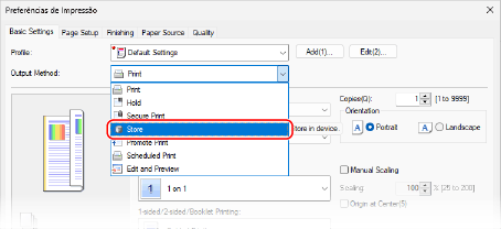Em [Job Processing], selecione [Store] e clique em [OK].