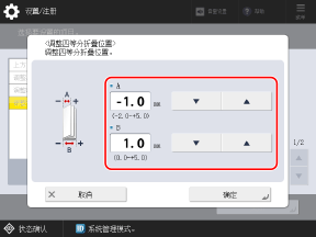 使用控制面板调整纸张折叠位置。无法使用计算机上的远程用户界面进行调整。