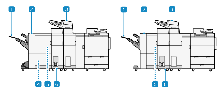 输出打印和复印的纸张。可以装订纸张、折叠纸张和使用其他分页装订处理功能。