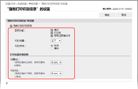 随即显示 [“强制打印识别信息”的设置] 屏幕。
